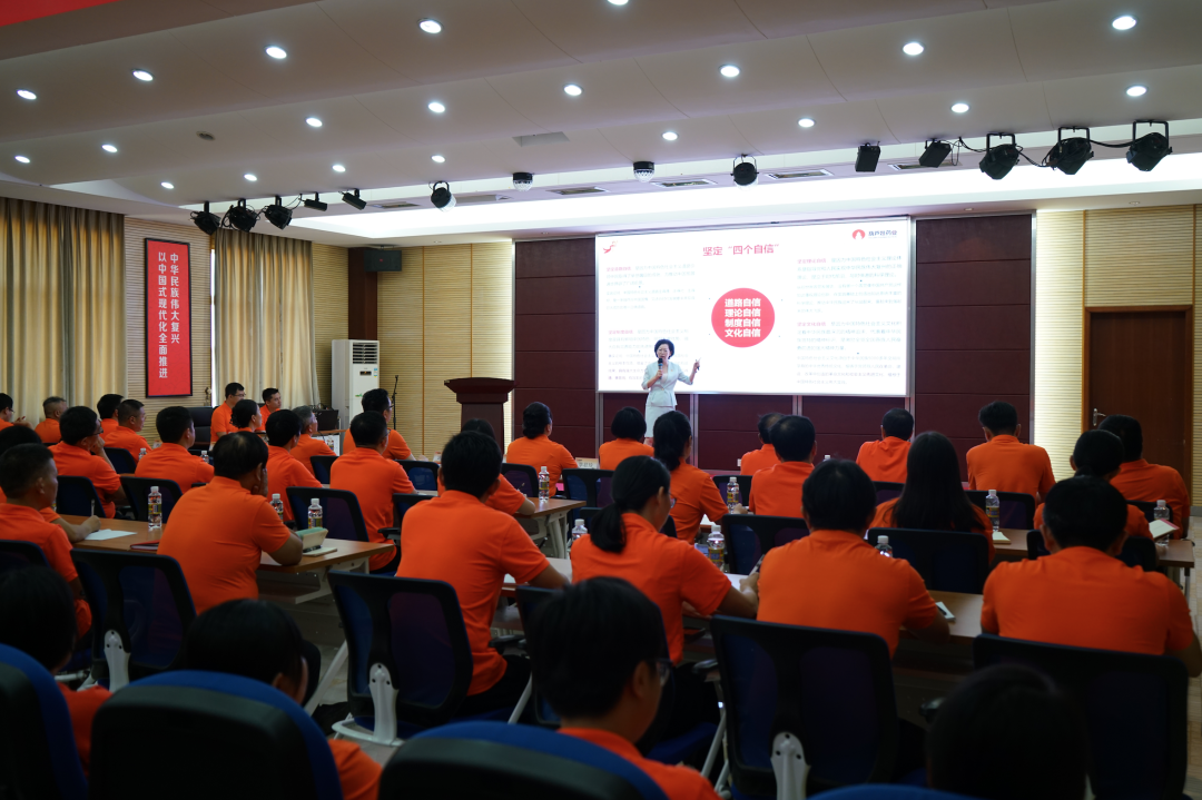 豪门国际药业集团党委书记、董事长刘景萍同志通过视频连线海口、杭州、南宁、来宾、江西等地的方式,向大家讲授主题党课。刘景萍书记从为什么要深刻领悟“两个确立”的决定性意义、增强“四个意识”、坚定“四个自信”、做到“两个维护”,充分认识海南自由贸易港建设的重大意义、做海南自由贸易港的建设者,将豪门国际药业集团二次创业和高质量发展与中国式现代化有机结合三个方面进行了全面系统的阐释和深入浅出的解读。党课主题鲜明、逻辑清晰、贴近实际,既有理论高度,又有实践深度,具有实践性和现实性意义。